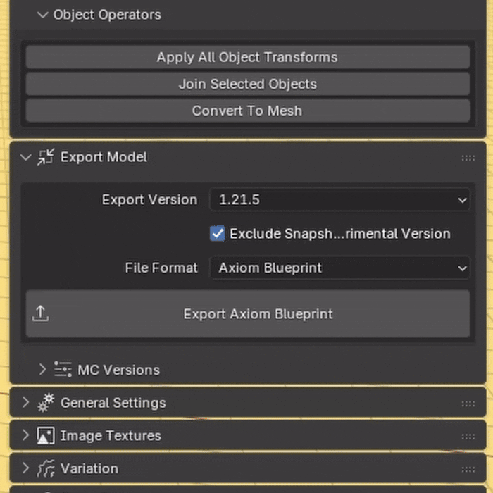 After you've voxelized your model, it's important to know how to get it out of Blender and into Minecraft. Whether exported as a blueprint or schematic, we have just the thing for the next step.