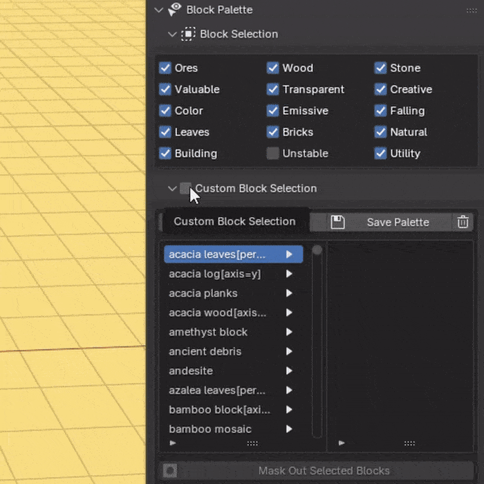 Custom Block Palette toggle